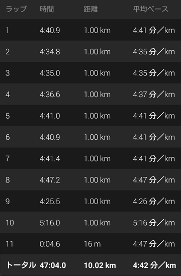 今回の4分40秒/kmあたりが、