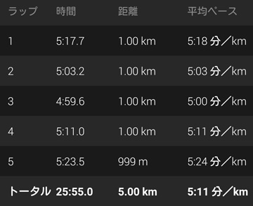 平均ペース:5分11秒/km